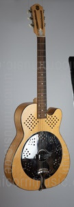 1996 Dobro Duolian D90 dans un état exceptionnel et en parfait état, complet avec son étui rigide d'origine. Ce dobro est l'un des modèles les plus rares de l'ère OMI, probablement produit pendant un an seulement, et est aussi l'un des meilleurs, avec une construction single-cone avec un pont en biscuit, corps en érable et un manche en érable œil d'oiseau recouvert d'une touche en palissandre. Sur le plan tonal, cette D90 a un ton corsé avec un direct vitreux et du punch. Les harmoniques sont douces et chantantes, et il y a une douceur dans les aigus qui complète la fin grave chaude et aboyante. Ajoutez à cela une articulation naturelle et un chatoiement typiques de l'érable en tant que bois de résonance, et ce résonateur réagit très bien aux entrées de l'utilisateur. Avec un poids de 5lbs 10oz, cette D90 a été réglée ici au Mike & Mike's Guitar Bar de manière professionnelle avec des cordes en bronze 12-53 et un tirant moyen qui permet de jouer aussi bien en slide qu'en fingerstyle...